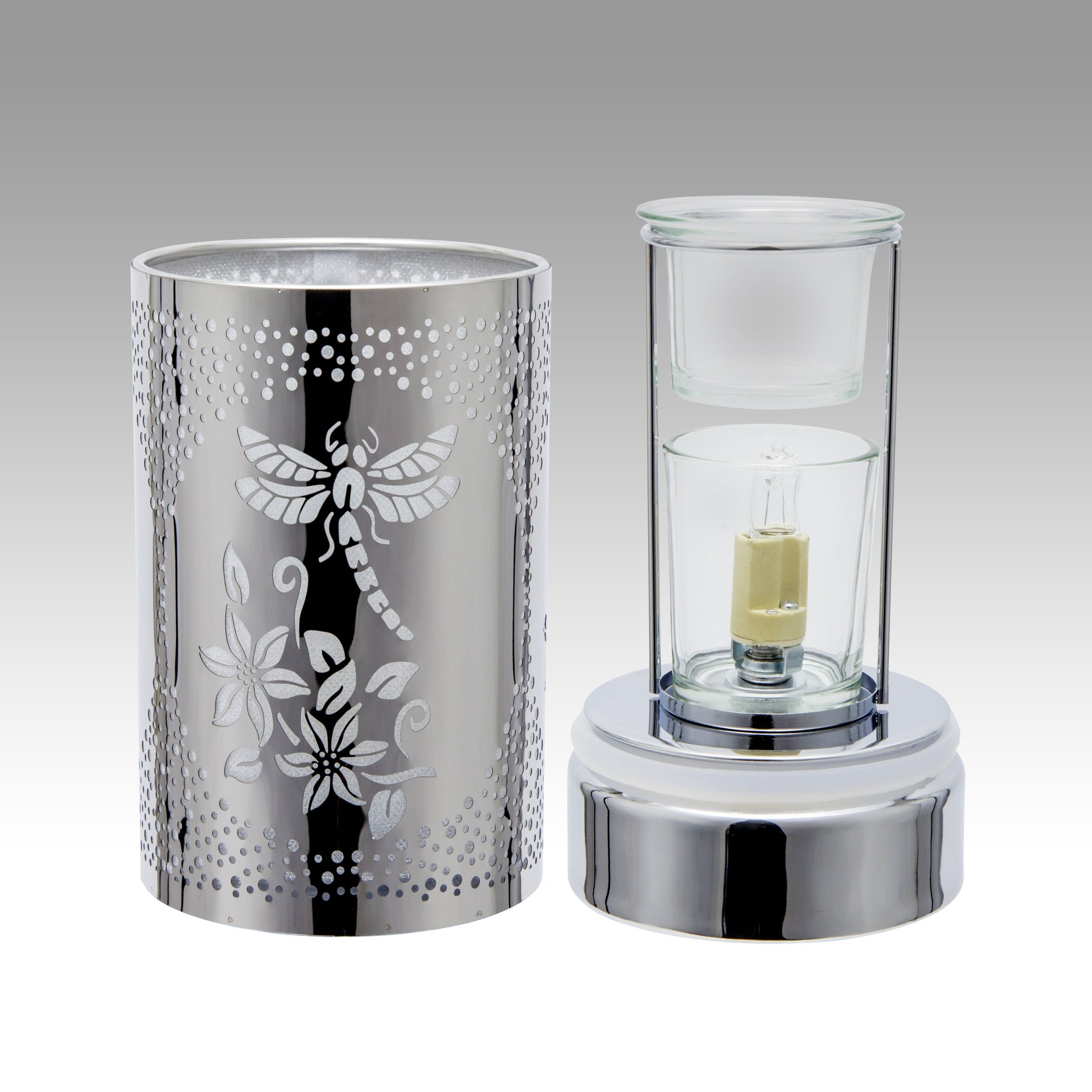 7" touch lamp-Fragrance Wax Melts Warmer -Electric Candle Essential Oil Burner-Metal Silver Dragonfly Table Decor by Peterson Housewares & Artwares